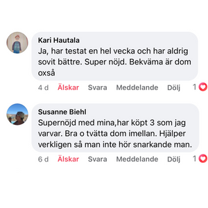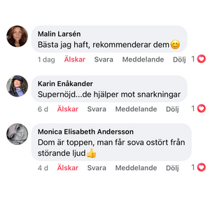 Vissa kunder rapporterar Àven att de fortfarande hör snarkningarna, men till en betydligt lÀgre och behagligare nivÄ - sÄ att de kan somna enkelt och slipper vakna pÄ nÀtterna.