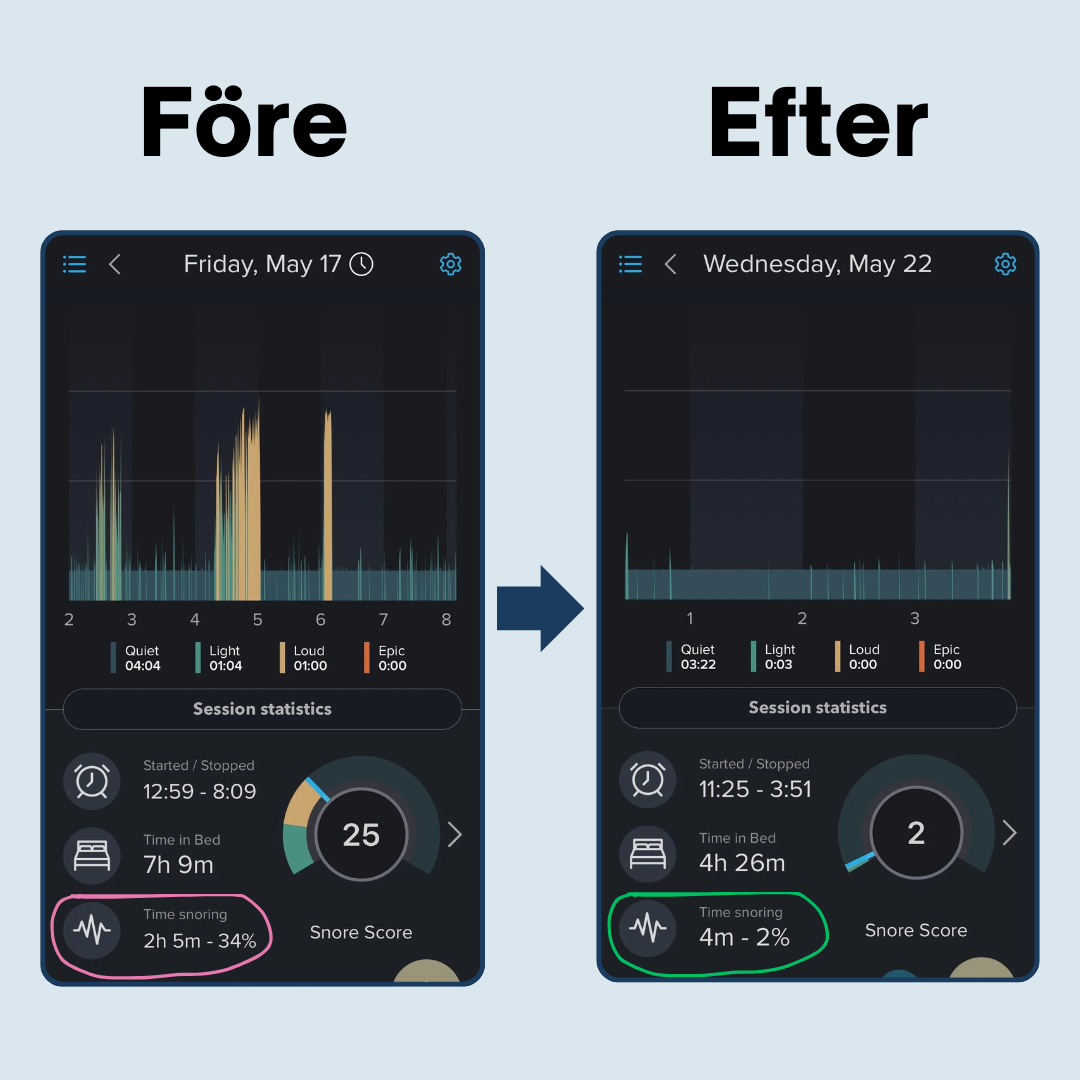 💤 Lindring av snarkning från första natten