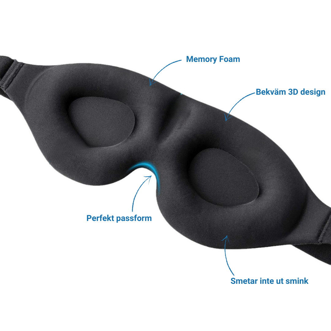 AnvÀnd Snorecenters 3D Sömnmask för att sÀkerstÀlla fullstÀndig mörklÀggning och komfort för optimala sömnnivÄer, genom att öka din kropps naturliga produktion av melatonin för en djupare och lÀngre sömn.